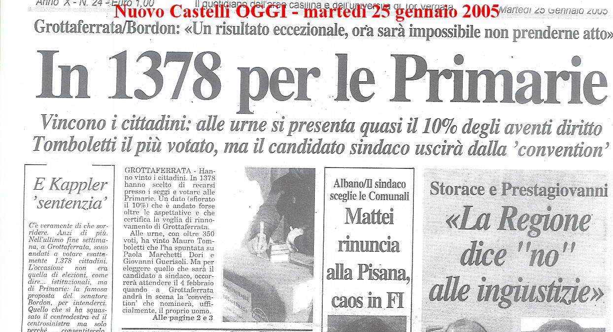 Nuovo Castelli OGGI: " In 1378 per le Primarie. Vincono i cittadini:alle urne si presentano quasi il 10% degli aventi diritto. Tomboletti il più votato, ma il candidato sindaco uscirà dalla "Convention".